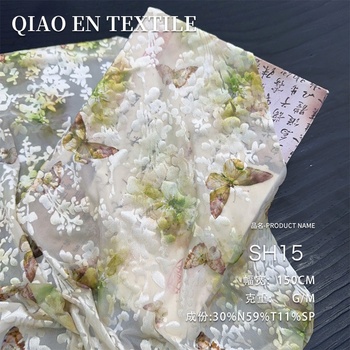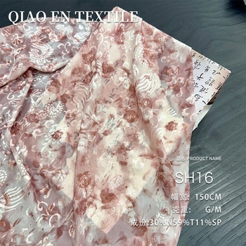 ผ้าสแปนเด็กซ์ผูกย้อมทำด้วยมือสำหรับผู้หญิงชั้นฐานทอพิมพ์ลายดอกไม้ระบายอากาศได้สไตล์จีนใหม่